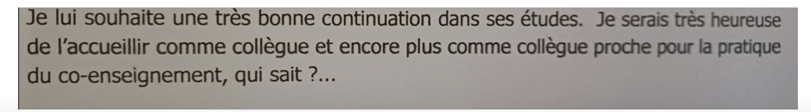 Pour clôturer cette rubrique, il me tenait à coeur d'insérer une remarque d'une maitre de stage :